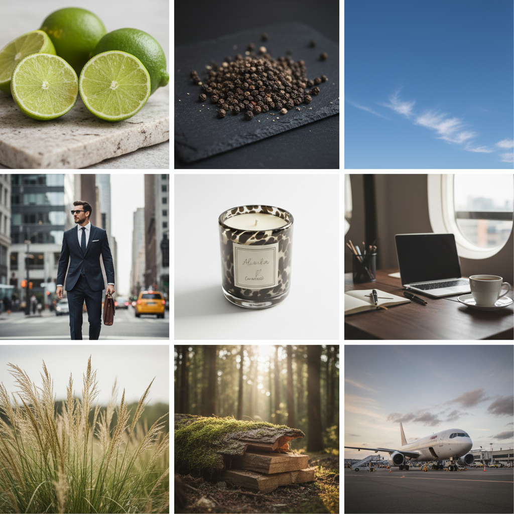 - Top: Bergamot, Citrus, Pepper