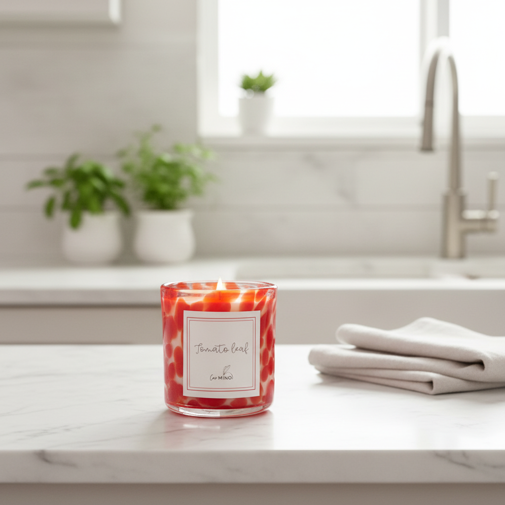 Our Tomato Leaf candle captures the unmistakable scent of a sun-drenched veggie garden — the sharp, green freshness of tomato leaves mingling with tagette and cassis, softened by a heart of orange blossom and grounded in warm musk, amber and orchid. Hand-poured with a premium blend of coconut and soy wax, crafted in the UK.