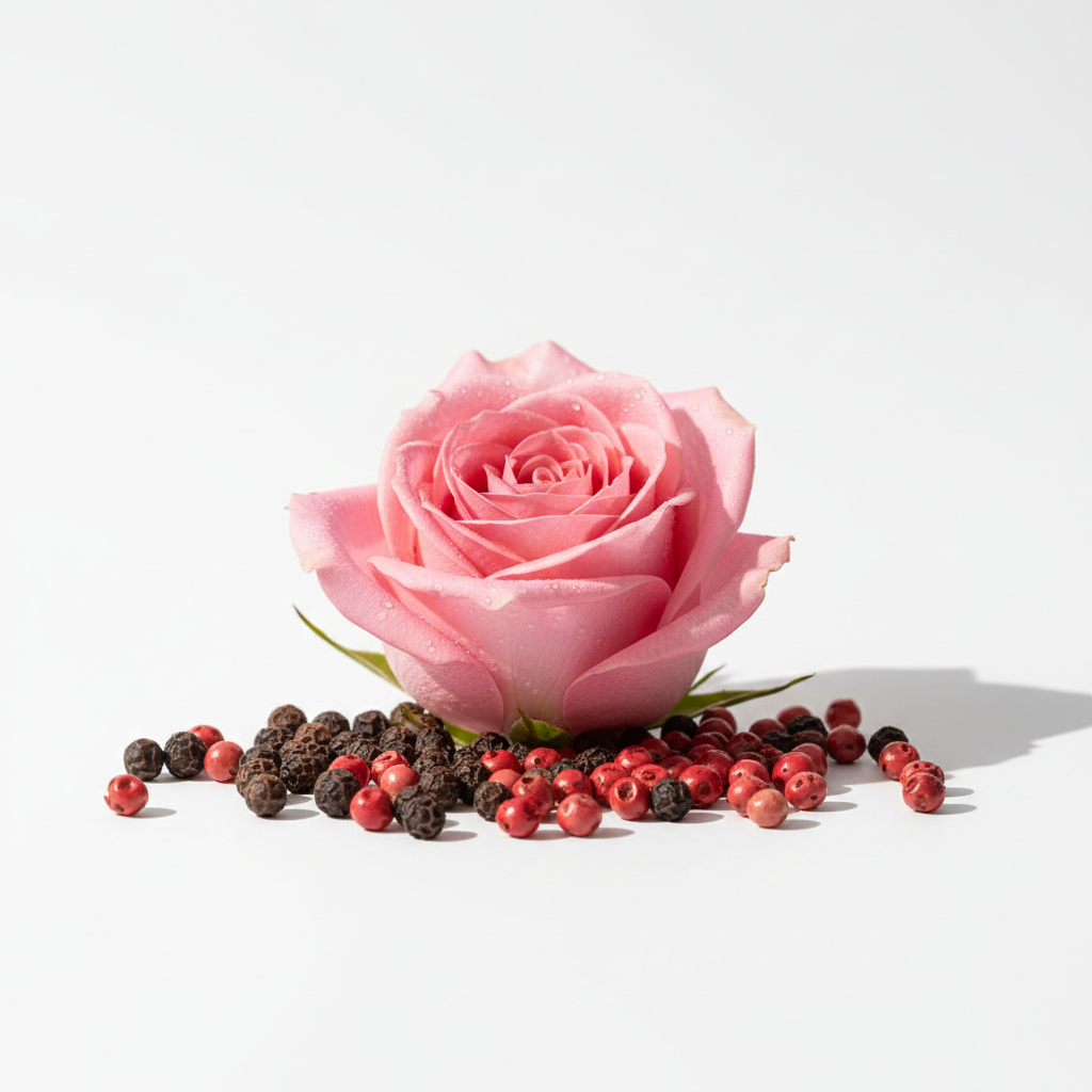 - Top: Raspberry, Rose, Black Pepper, Pink Pepper